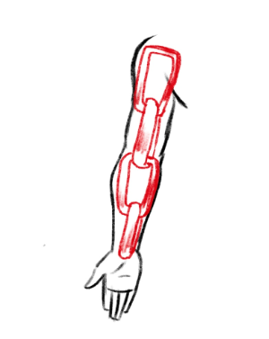 Hace tiempo vi una imagen de una cadena semejándola al brazo de un hombre, mostrando dónde se ve más gordito un brazo y por donde se estrecha. Me pareció una imagen muy ilustrativa, así que aquí os recreo la imagen que siempre tengo en mente cada vez que dibujo un brazo por si os sirve de ayuda.