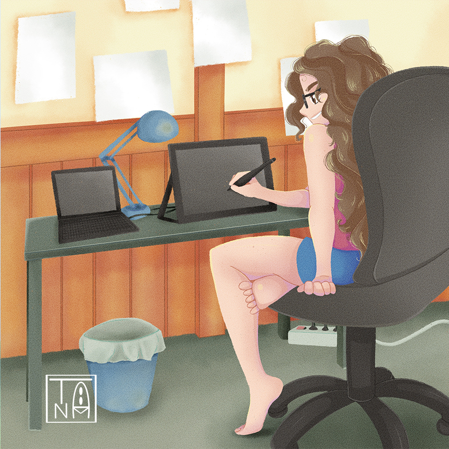 Mis técnicas favoritas de dibujo son el arte digital, en concreto, me gusta usar Procreate a través de mi Ipad Pro, Clip Studio SAI y Photoshop en mi ordenador. Sin embargo también me gusta dibujar en tradicional con técnicas de acuarelas, rotuladores y lápices de colores.