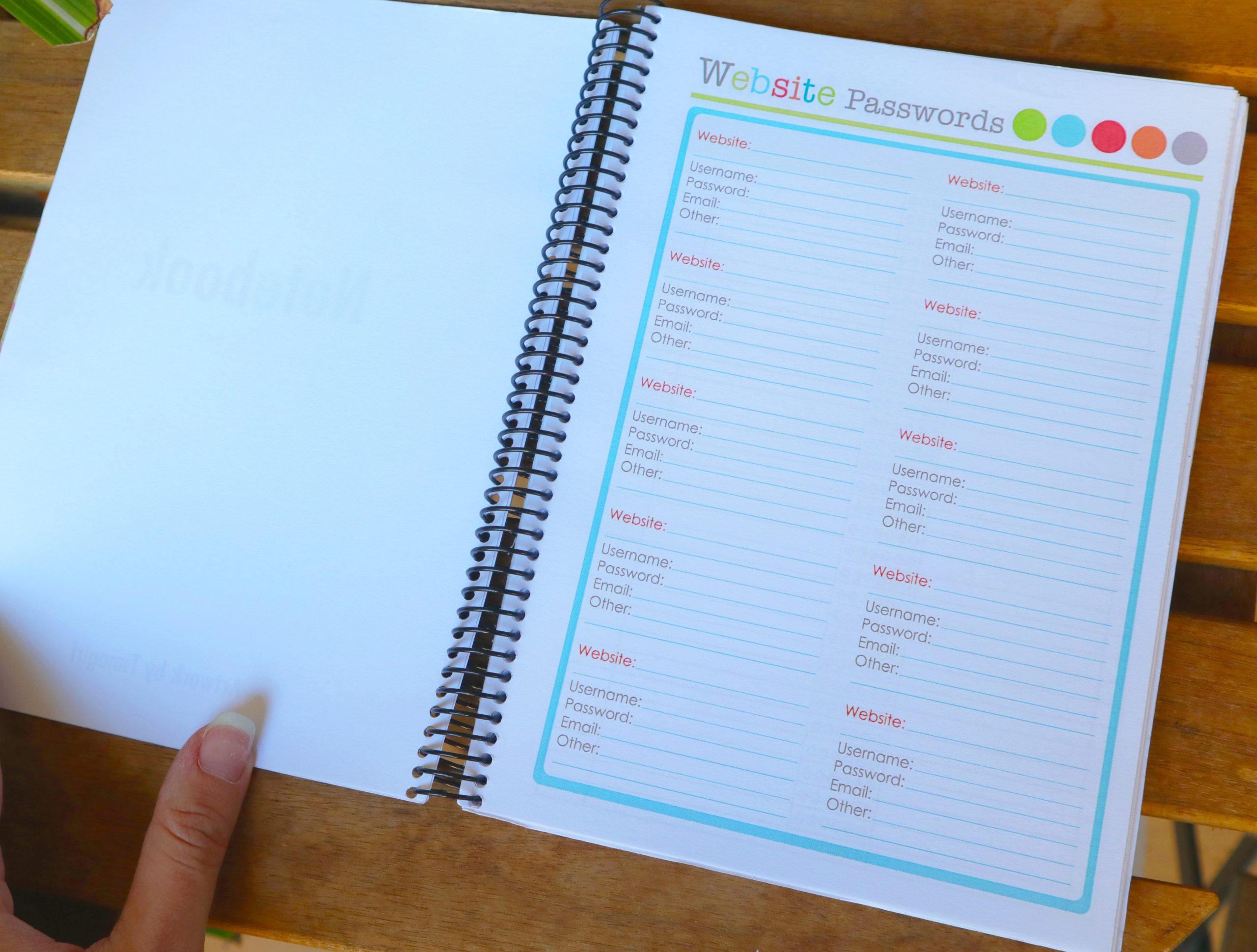 - Secciones Personalizables: Incluye espacio para listas de pendientes, contraseñas y eventos.