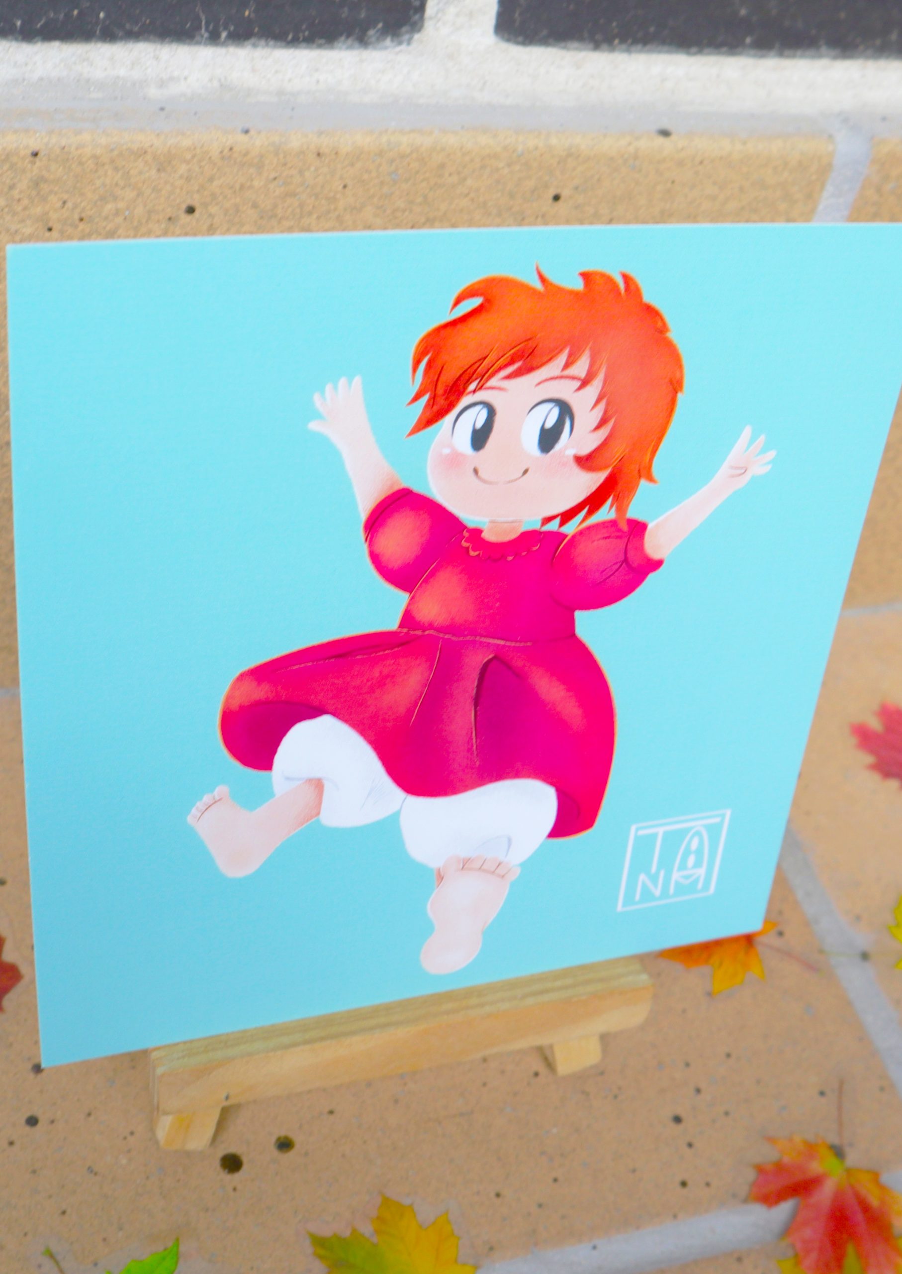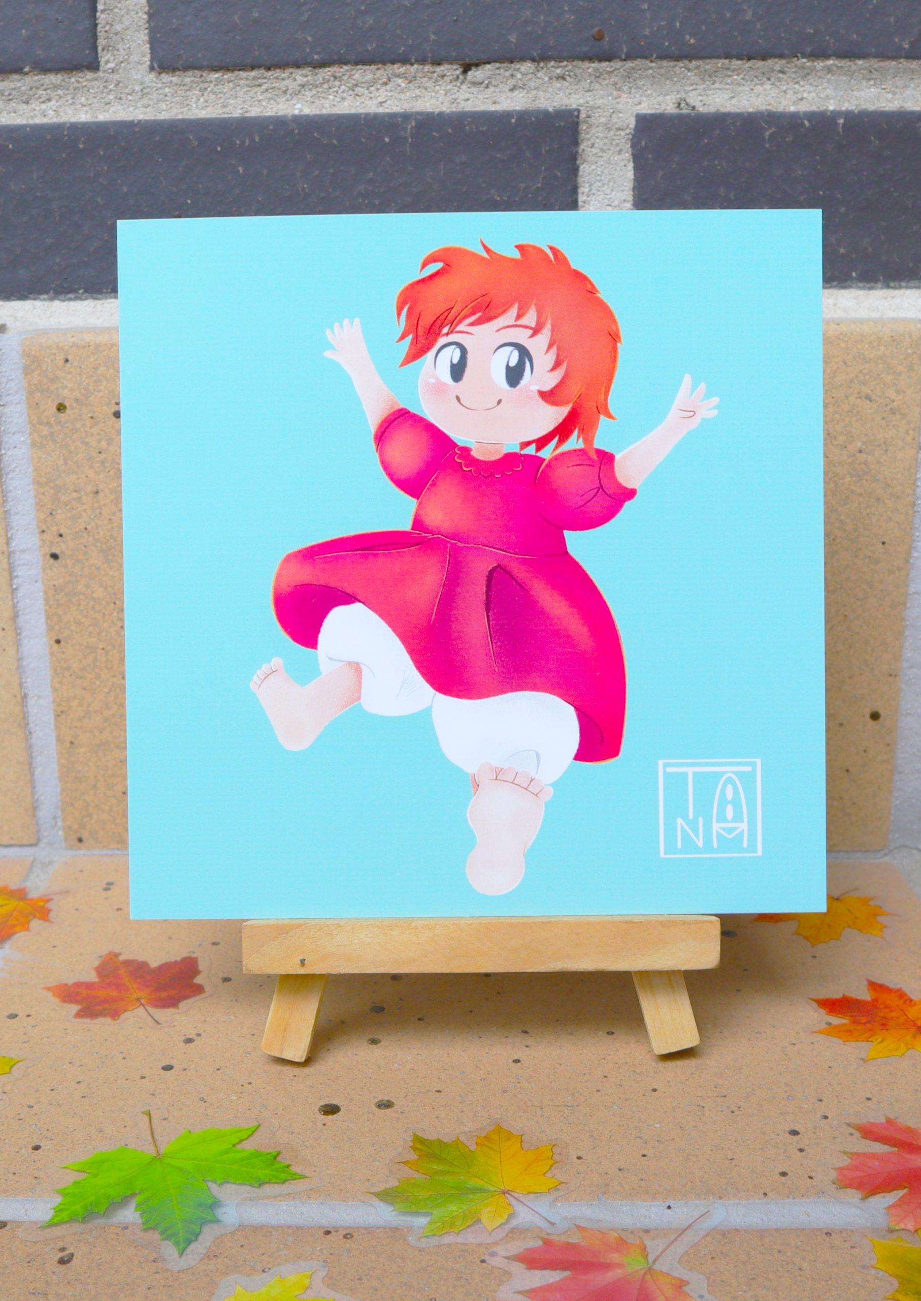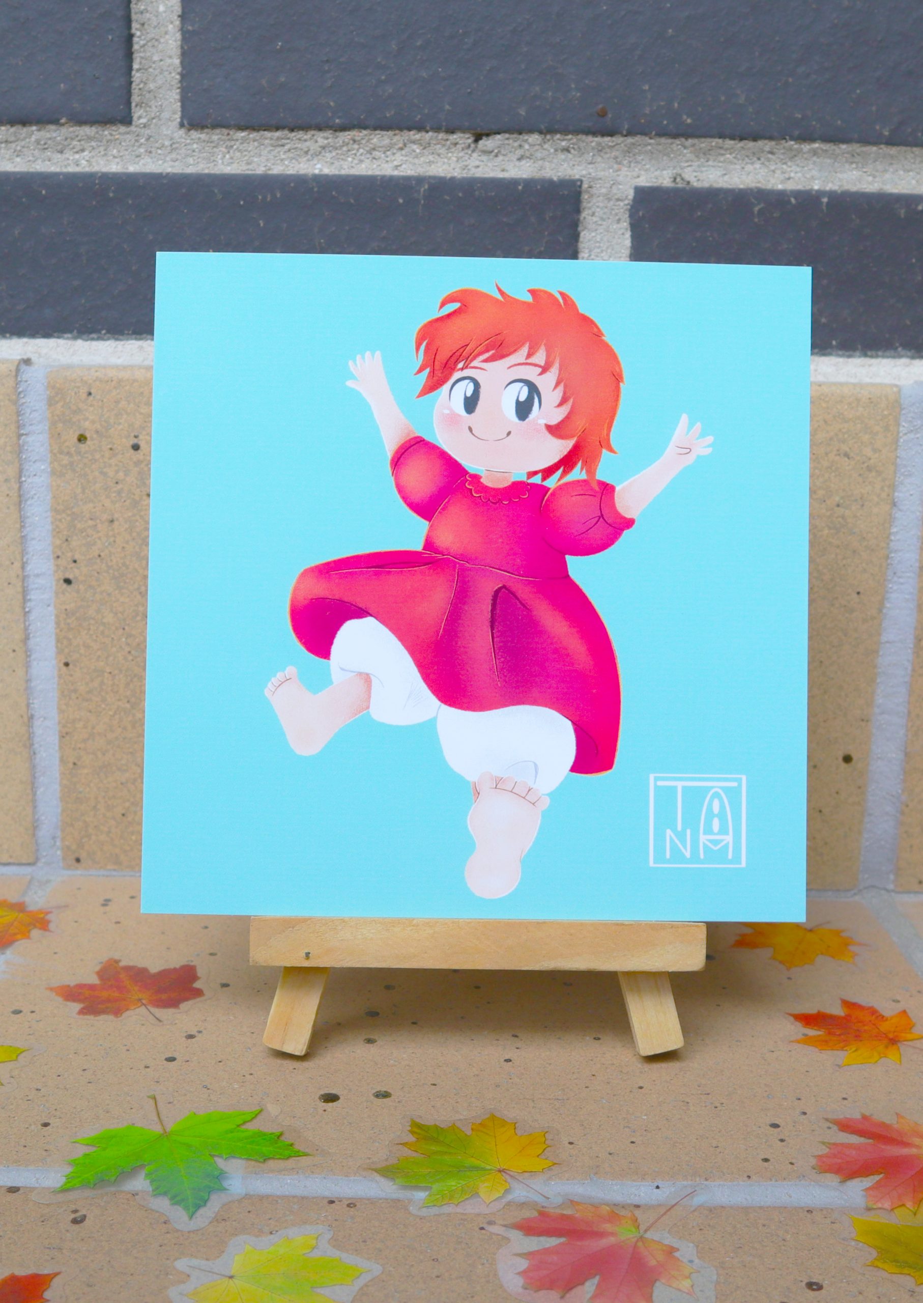 Ilustración de Ponyo inspirada en Ponyo en el Acantilado. Diseño exclusivo de Timanima, impreso en papel premium (15×15 cm) con colores vibrantes. Ideal para fans de Studio Ghibli y coleccionistas. ¡Haz tu pedido ahora!