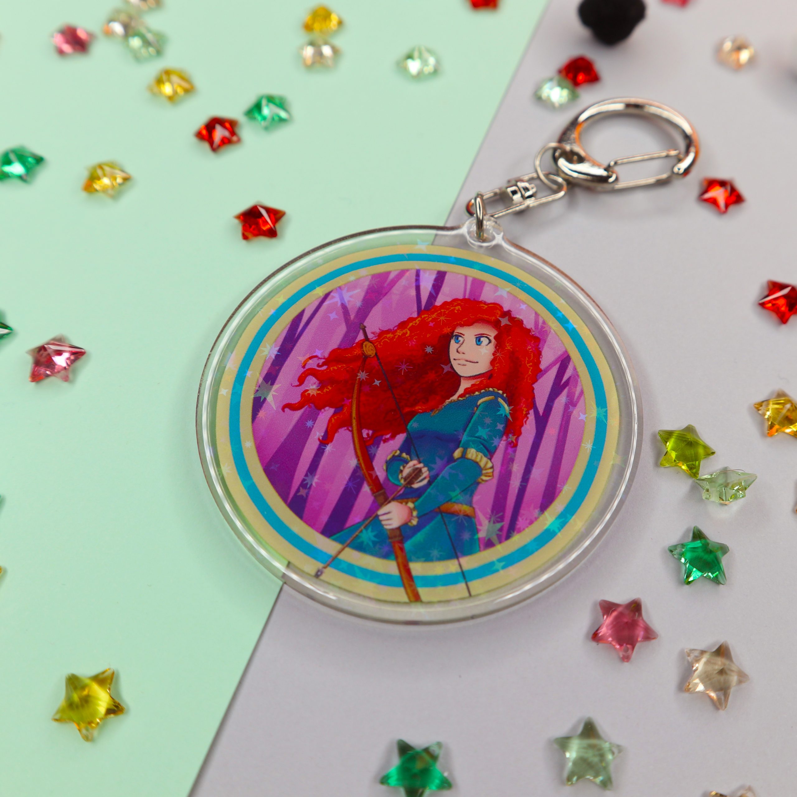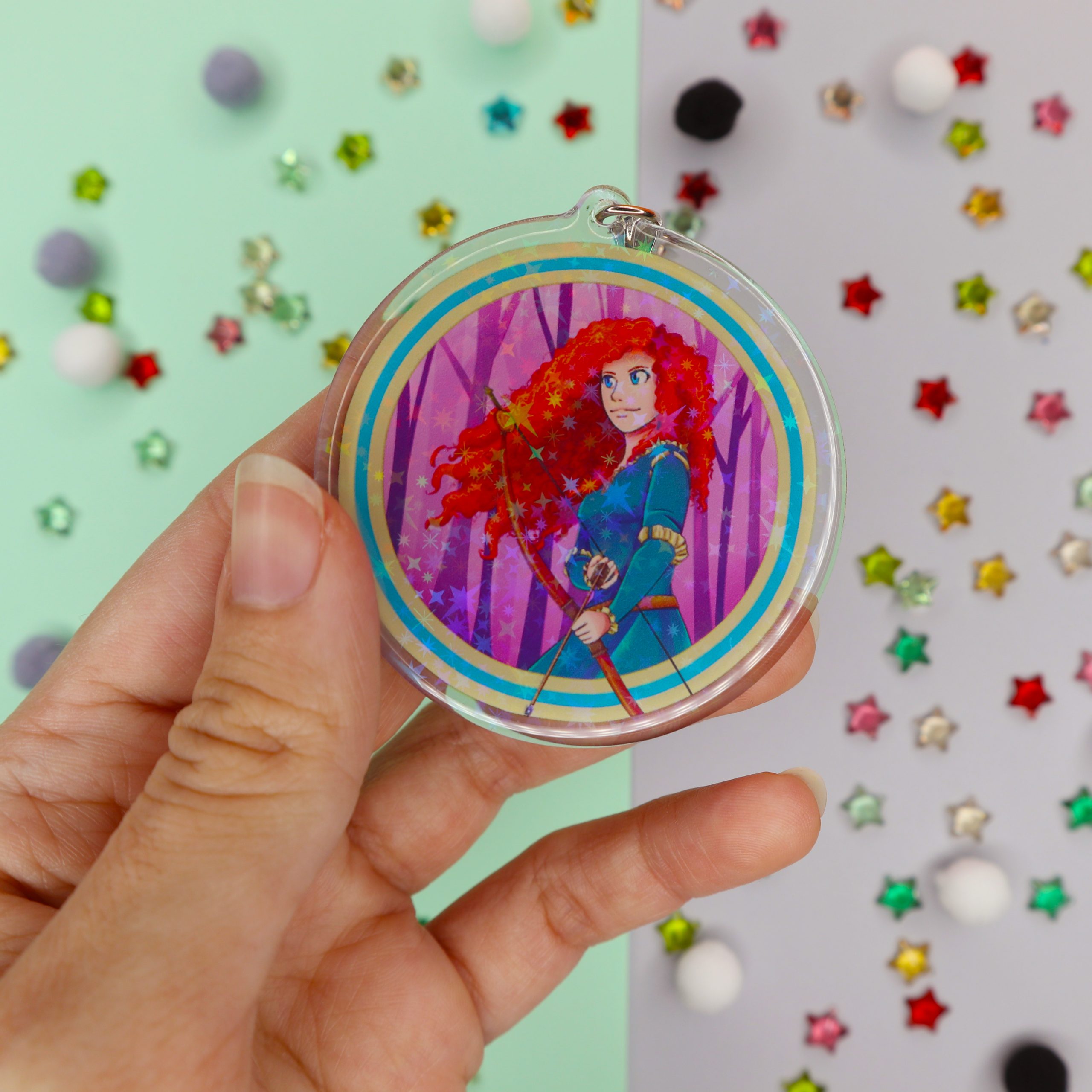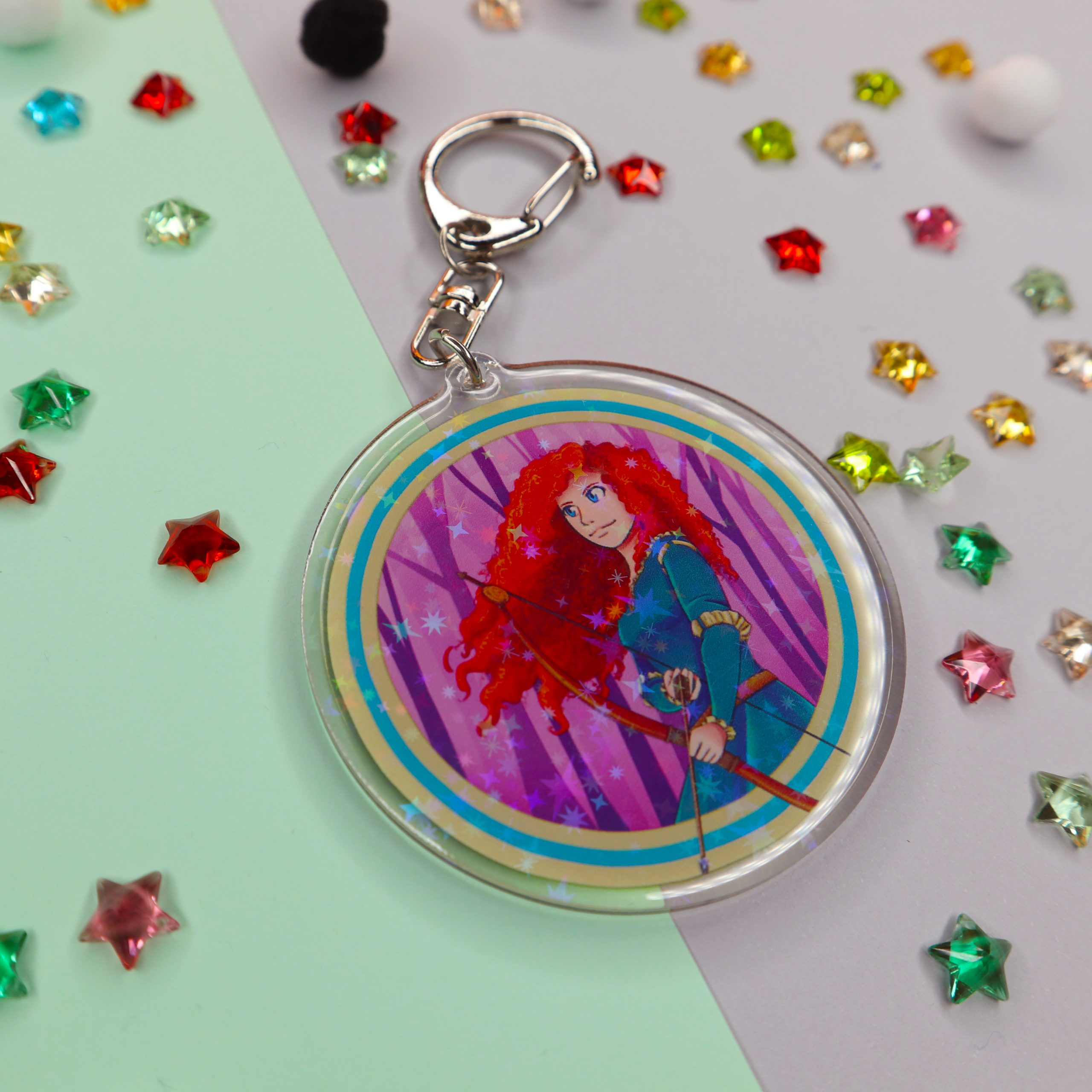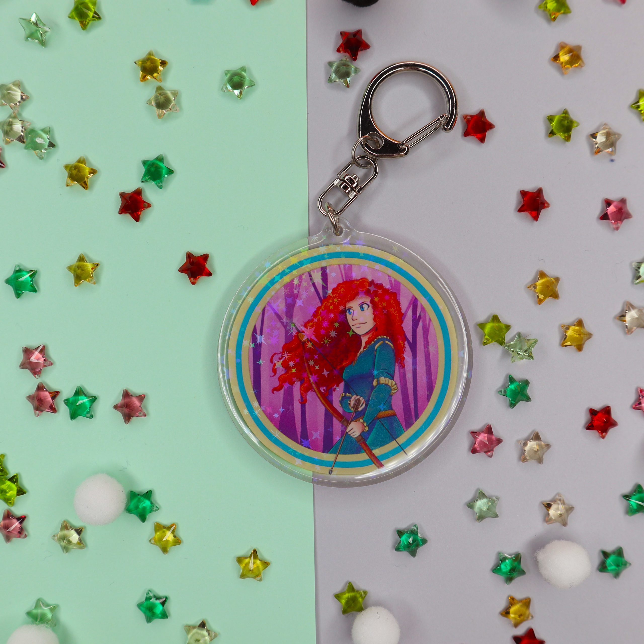 -Llavero Holo y Epoxy con brillantes estrellas en su interior.