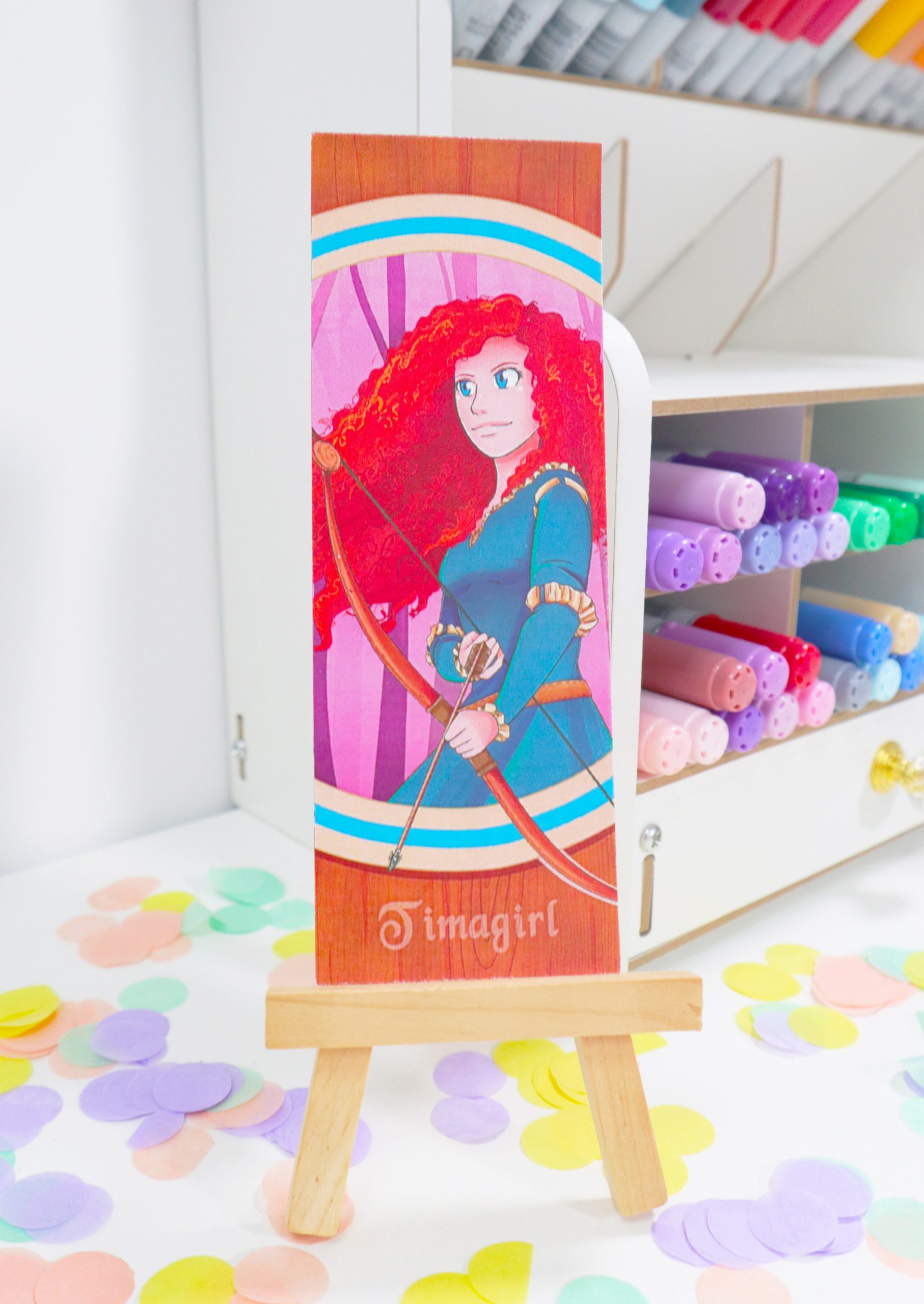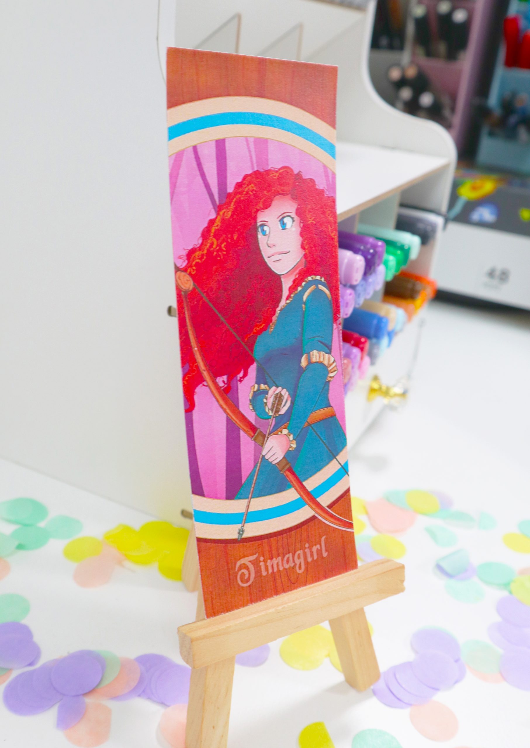 Marcapáginas de Mérida, inspirado en Brave de Disney. Ilustración exclusiva de Timanima, impresa en papel premium (5×14 cm) con colores vibrantes y duraderos. ¡Ideal para fans de Disney y amantes de la lectura!