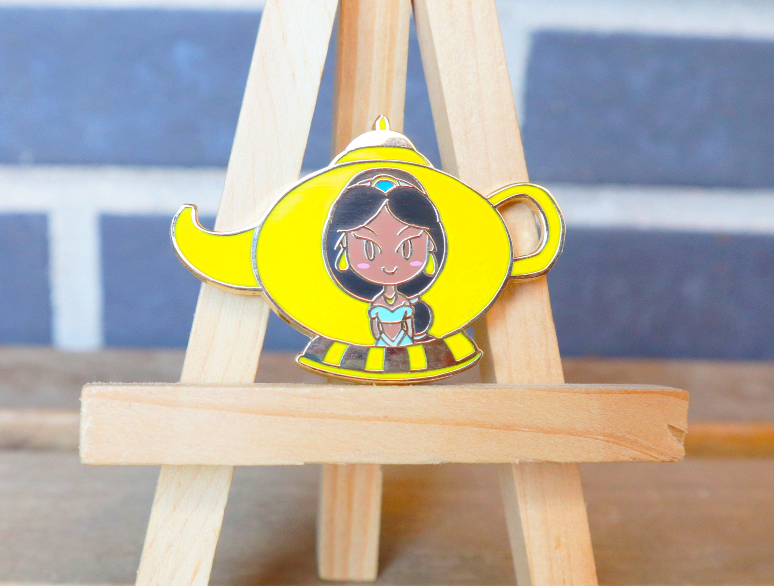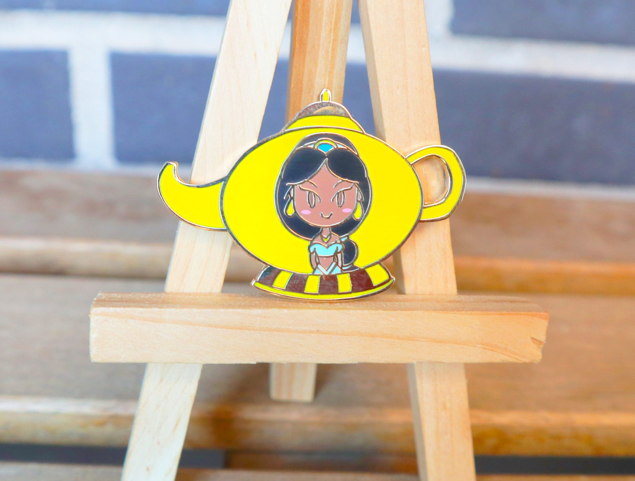 Este pin exclusivo de Jasmine de Aladdin, hecho posible gracias a una campaña de crowdfunding, combina detalles de alta calidad y un diseño inspirado en la valentía y elegancia de la princesa de Disney.